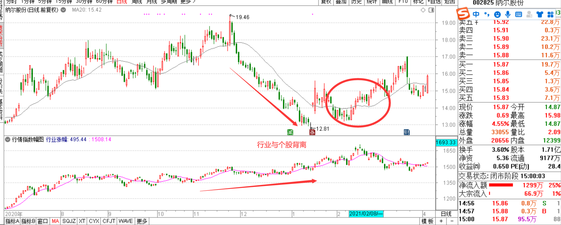 主要是寻找指数和个股发生背离后,个股走势构筑底部企稳时的交易机会